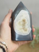 V duchovní úrovni pak citlivě napomáhá přijmutí sebe sama, a tím posílí sebedůvěru a vnitřní stabilitu. Achát vylepšuje duševní život, neboť posiluje schopnost soustředění.