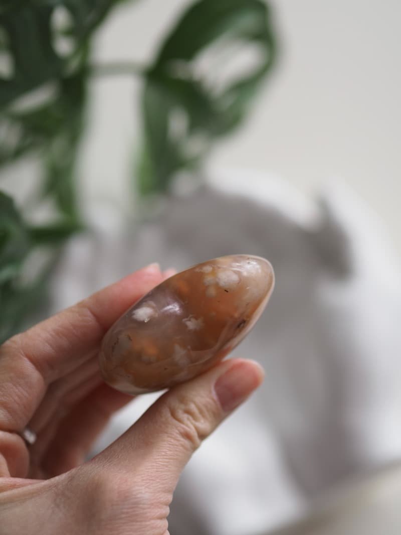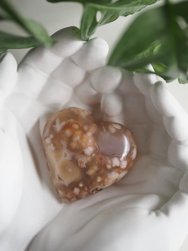 Achát harmonizuje energetické soustavy lidského těla v dualitě reality a jeho ukotvení tady a teď. Dodává nám tak citovou, tělesnou a rozumovou rovnováhu, jež uklidňuje a jemně vytrvale povzbuzuje vnitřní sílu každého z nás. Růžový Achát podporuje lásku, sebevědomí, klid a stabilitu.