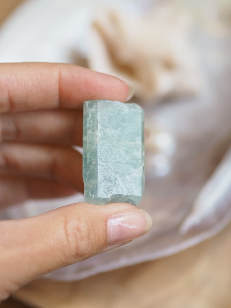 Jeho blankytně modrá barva navozuje klid mysli, zahání stres a strach. Akvamarín symbolizuje odvahu. V duchovní rovině zbystřuje intuici a otevírá cestu jasnozřivosti. Akvamarín vytváří ochranný štít pro auru a uvádí do rovnováhy čakry. Jeho očistná zář vnáší do naší mysli pocit spokojenosti, zmirňuje podrážděnost a agresivitu.