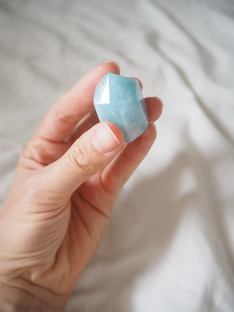 Pomáhá při meditaci a duchovní očistě. Podporuje lepší komunikaci se sebou sama, s vnitřním Já. Je úzce spojen s krční čakrou. Pomáhá odstraňovat strachy z projevu a zmírňuje stavy uzavřenosti a plachosti z obavy, co si o nás druzí pomyslí. Pomáhá s jasným vyjadřováním toho, co cítíme od srdce. Můžeme ho mít s sebou například, když máme mít nějakou veřejnou přednášku nebo prezentaci. Stejně tak se nám může hodin při pracovních jednáních. Dále zlepšuje sebevyjadřování a rozvíjí kreativitu.