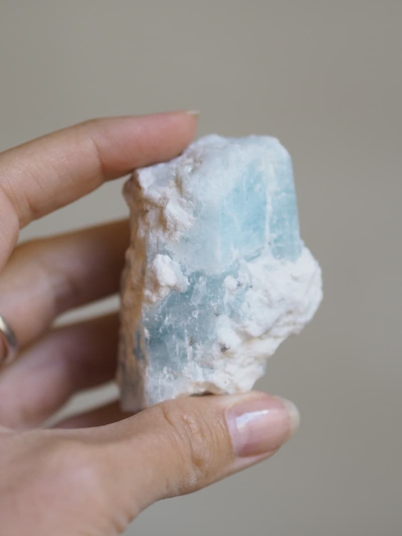 Jeho blankytně modrá barva navozuje klid mysli, zahání stres a strach. Akvamarín symbolizuje odvahu. V duchovní rovině zbystřuje intuici a otevírá cestu jasnozřivosti. Akvamarín vytváří ochranný štít pro auru a uvádí do rovnováhy čakry. Jeho očistná zář vnáší do naší mysli pocit spokojenosti, zmirňuje podrážděnost a agresivitu.