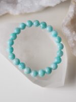 Krásný náramek z kuliček Amazonitu vysoké kvality svou barvou připomíná vodní hladinu, moře, oceán, slunce, teplo… Amazonit je mimořádně uklidňujícím kamenem, tiší nervový systém, rozptyluje negativní energie. Zmenšuje obavy a strach a zvyšuje intuici. Vyrovnává žensko-mužský princip uvnitř každého z nás. Podporuje harmonii v partnerských vztazích. Pohlcuje škodlivé záření z mobilních telefonů.