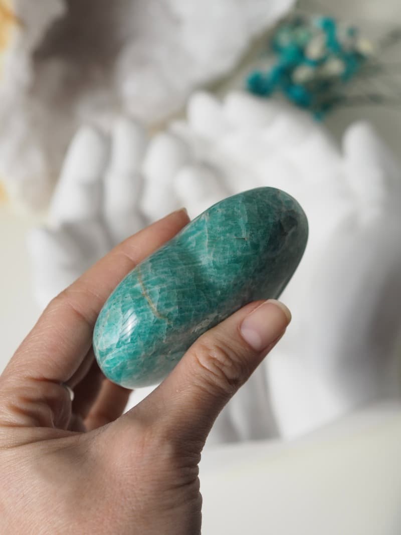 Amazonit svou barvou připomíná vodní hladinu, moře, oceán, slunce, teplo… Je mimořádně uklidňujícím kamenem, tiší nervový systém, rozptyluje negativní energie. Zmenšuje obavy a strach a zvyšuje intuici. Vyrovnává žensko-mužský princip uvnitř každého z nás. Podporuje harmonii v partnerských vztazích. Pohlcuje škodlivé záření z mobilních telefonů.