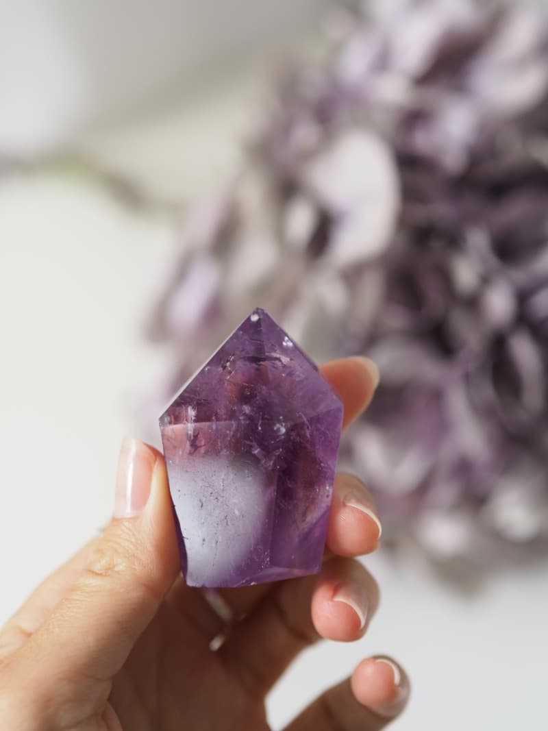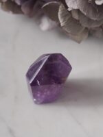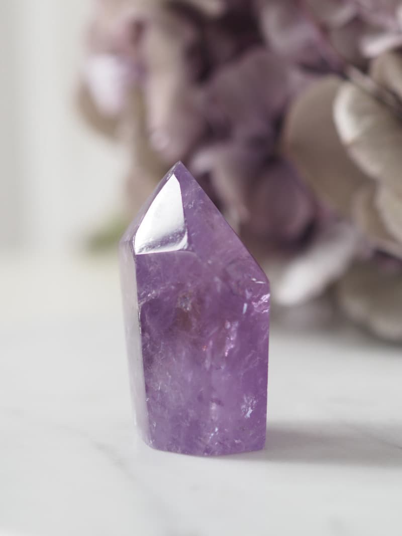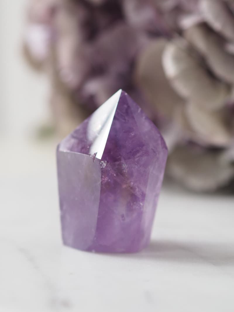 Broušená špice Ametystu. Ametyst je kamenem Prozření. Vytahuje na povrch věci, které jsou proti očekávání člověka. Pro lidstvo je Ametyst nesmírně důležitým kamenem, přináší jakýsi dotek boží moudrosti ve hmotě. Člověk jej bez víry a jakéhokoliv zasvěcení přijímá skrz jeho vibrační pole. Ametyst vytvoří z Vašeho prostoru takovou svatyni. Navíc poskytuje mimořádnou ochranu.