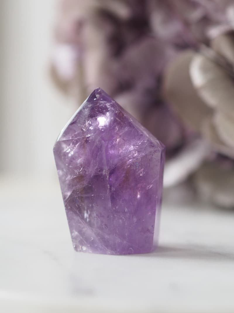Ametyst otevírá korunní čakru a rozvíjí intuici. Propojuje s Vyšším Já, s Duší, s bytostmi Světla. Ukazuje nám, kdo skutečně jsme, jaké Dary neseme a co je naším posláním.