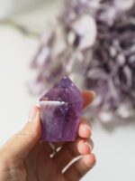 Ametyst ve tvaru špice (obelisku) udává směr energie pro Váš záměr rovnou k Nebesům a napomáhá tak jeho naplnění. Nese v sobě kvalitu ostrosti a jasnosti.
