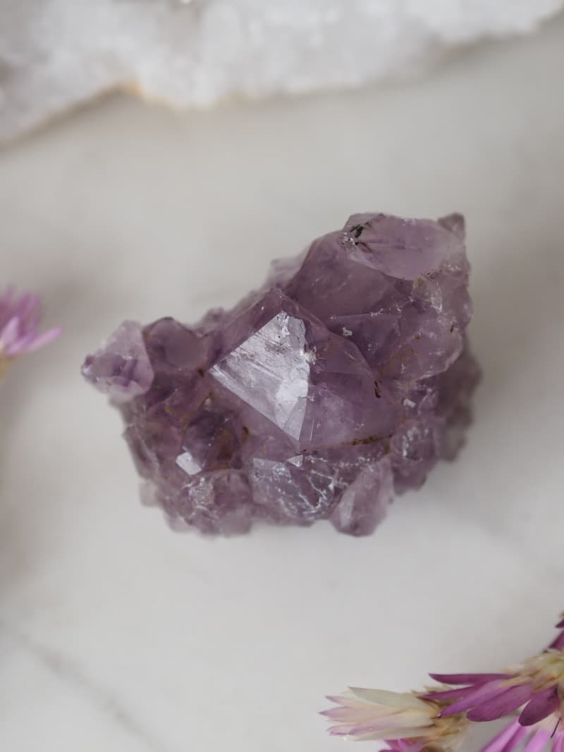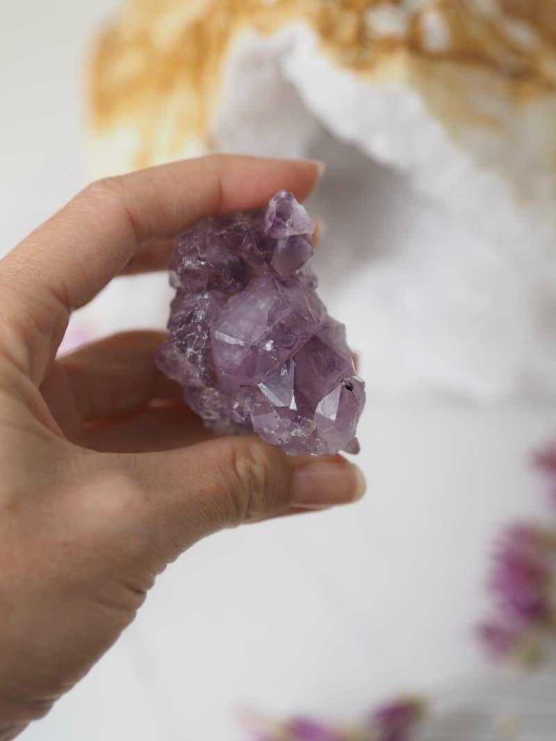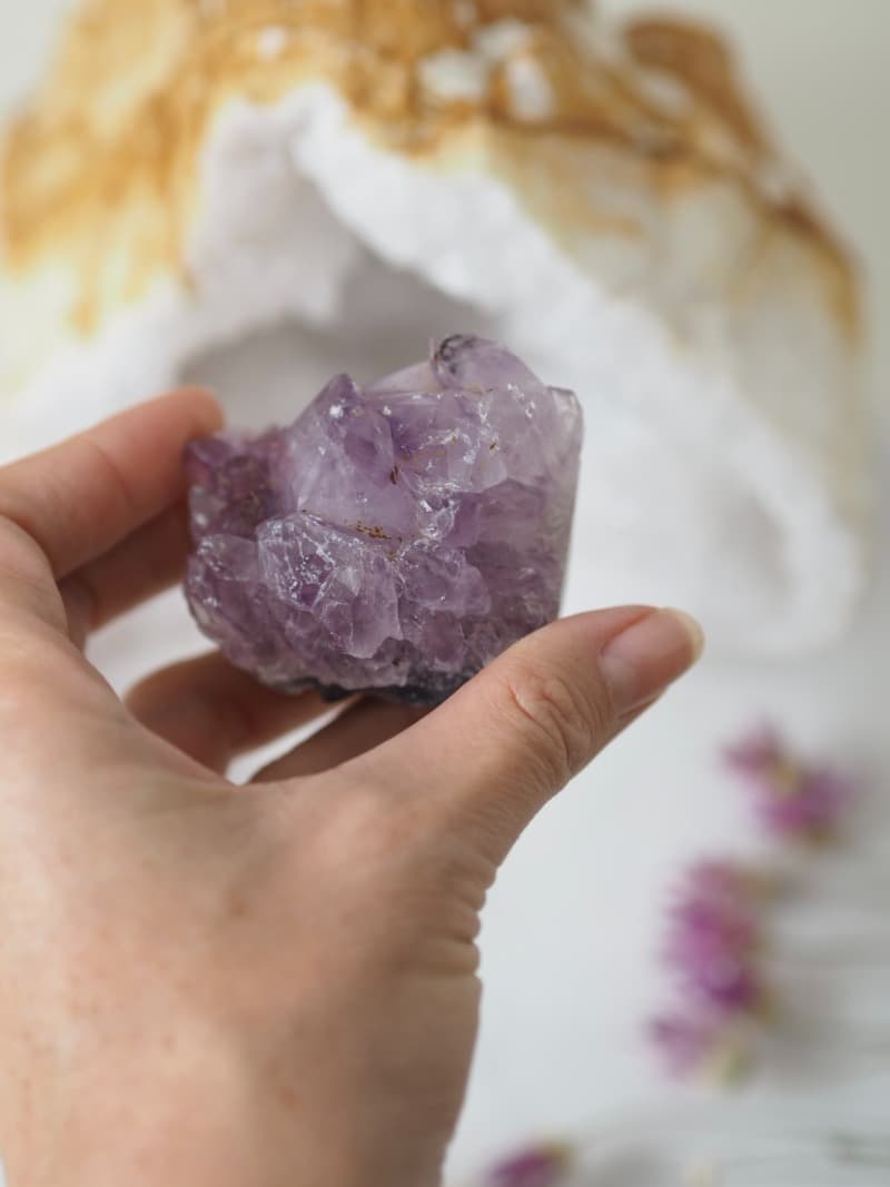 Ametyst okouzlí mystickou fialovou barvu, která vdechne místu čarovnou atmosféru. Velký kámen prostor ozdobí svým unikátním výrazem, který působí jako fantastický palácový šperk. Kromě toho poskytuje mimořádnou ochranu. Povznáší ducha, vede k harmonickému vnímání vnitřních světů a rozvíjí intuici. Je to mimořádně mocný kámen s vysokými vibracemi, silnou léčivou a očistnou mocí, zahání noční můry, podpoří klidný spánek a navodí příjemné uzdravující sny.