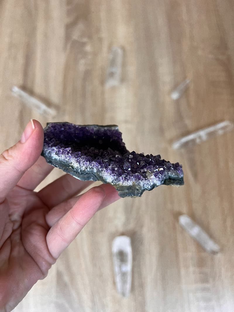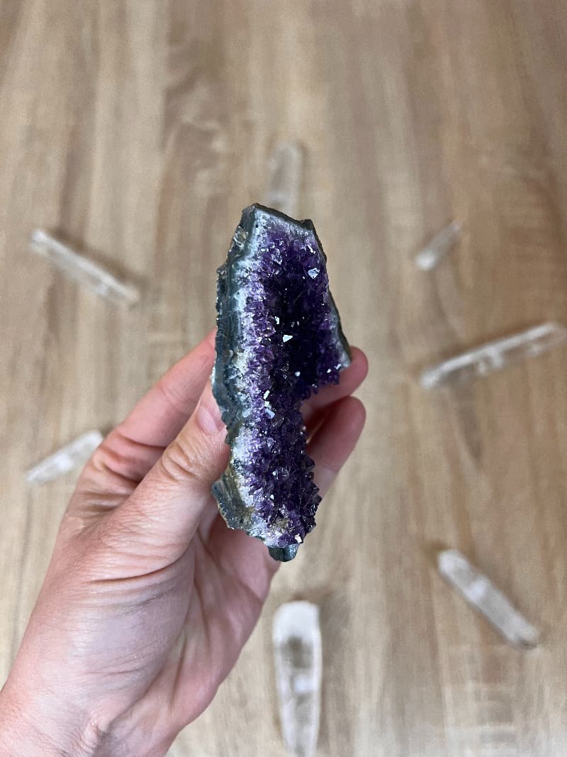 Drúza Ametystu je skupina krystalů narostlých na společném základě, které během věků spolutvořily svoji originální podobu. Vyniká svým přirozeným neupraveným vzhledem, který oceníte v interiéru. Energii rozprostírá volně do prostoru a stává se centrem harmonie, míru a pozitivní energie.