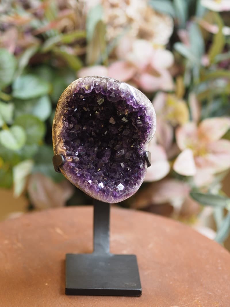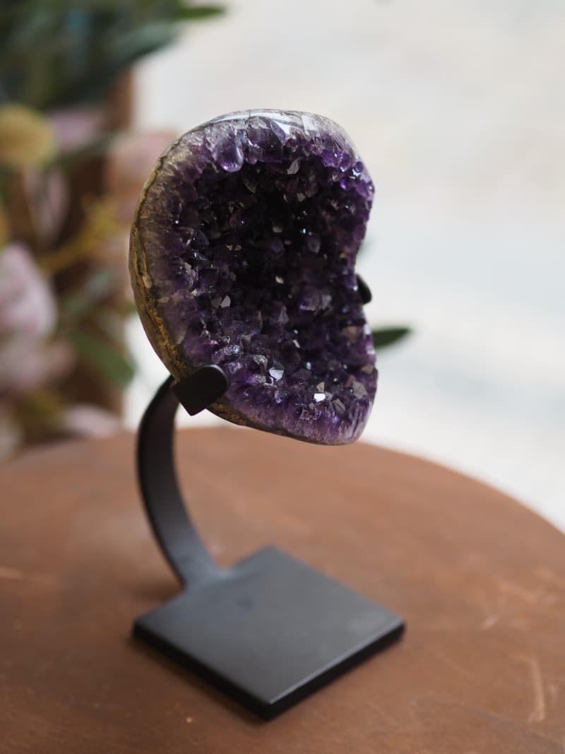 Uruguayský Ametyst z oblasti Artigas je známý svou temně fialovou barvou a vysokou čistotou. Jsou obdivovány nejen odborníky, ale i všemi milovníky kamenů. Okouzlí svou mystickou fialovou barvu, která vdechne místu čarovnou atmosféru. Krystal Ametystu prostor ozdobí svým unikátním výrazem, který působí jako fantastický palácový šperk.
