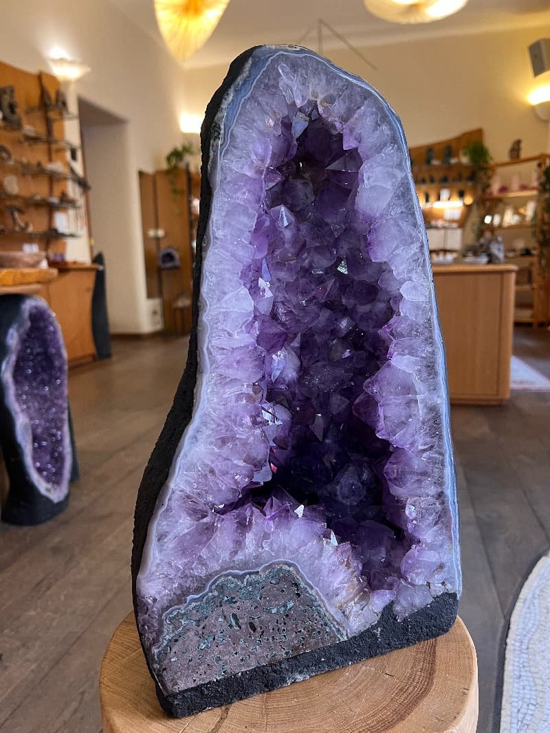 Díky tomu dnes můžeme obdivovat tyto unikátní přírodní útvary. Ametystová geoda energii rozprostírá volně do prostoru a stává se centrem harmonie, míru a pozitivní energie.