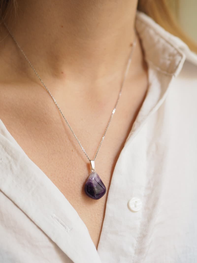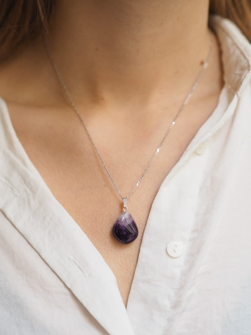 Ametyst okouzlí mystickou fialovou barvu, poskytuje mimořádnou ochranu. Povznáší ducha, vede k harmonickému vnímání vnitřních světů a rozvíjí intuici. Je to mimořádně mocný kámen s vysokými vibracemi, silnou léčivou a očistnou mocí, zahání noční můry, podpoří klidný spánek a navodí příjemné uzdravující sny.