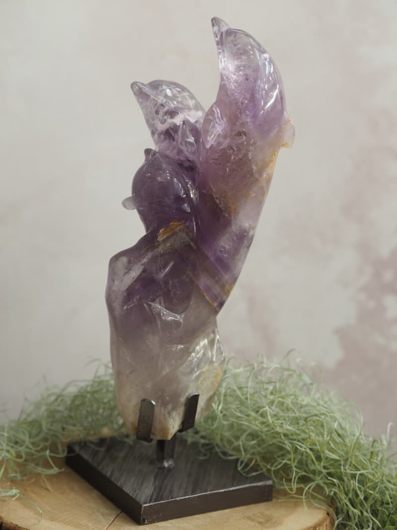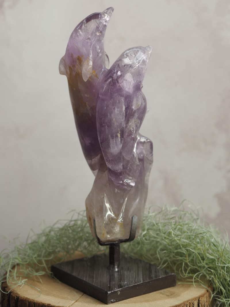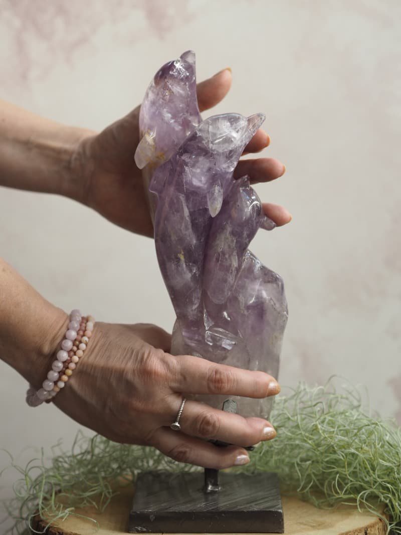 Ametyst otevírá korunní čakru a rozvíjí intuici. Propojuje s Vyšším Já, s Duší, s bytostmi Světla. Ukazuje nám, kdo skutečně jsme, jaké Dary neseme a co je naším posláním.
