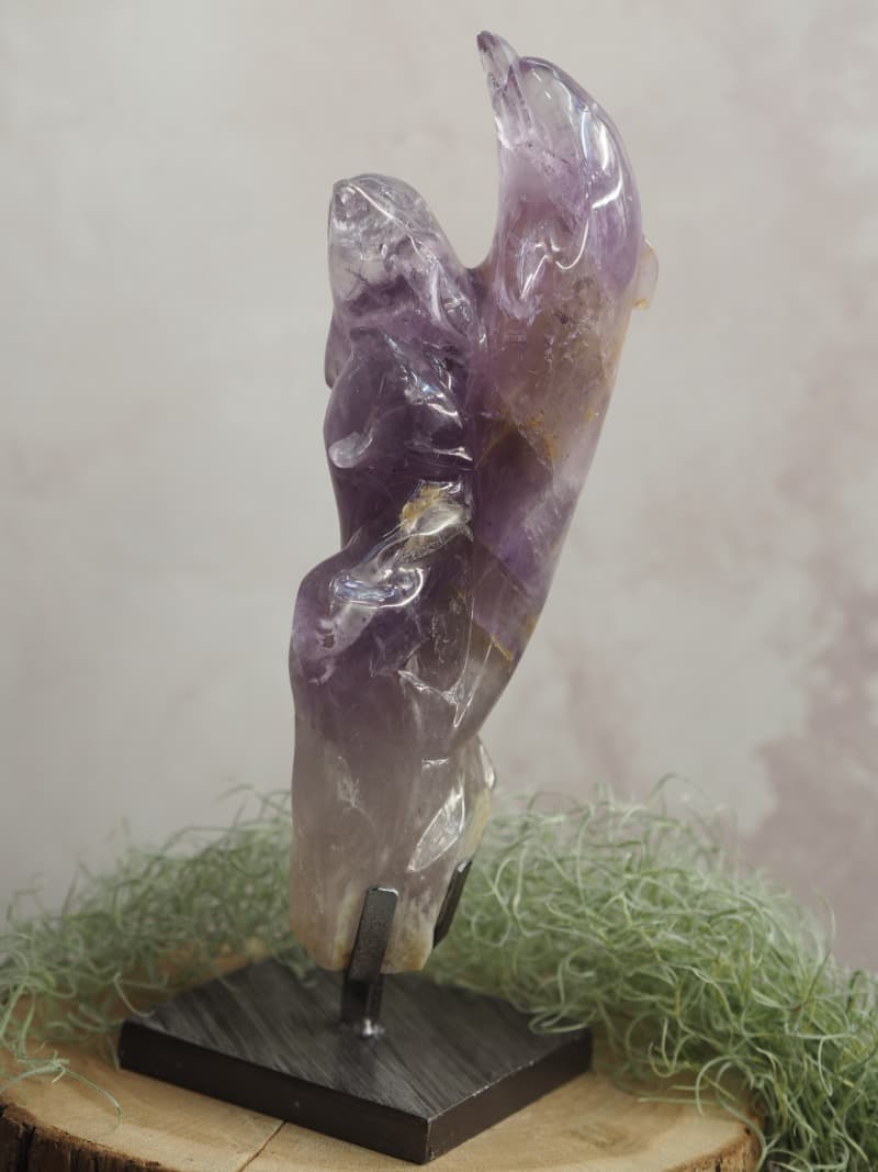 Brazilský Ametyst se těží zejména v oblasti Minas Gerais. Na trhu je nejrozšířenější, tím i dostupný a levnější, než Ametysty z jiných nalezišť. Je známý svou škálou odstínů fialové od světlejších až po hlubší barvy. Okouzlí svou mystickou fialovou barvu, která vdechne místu čarovnou atmosféru. Krystal Ametystu prostor ozdobí svým unikátním výrazem, který působí jako fantastický palácový šperk.