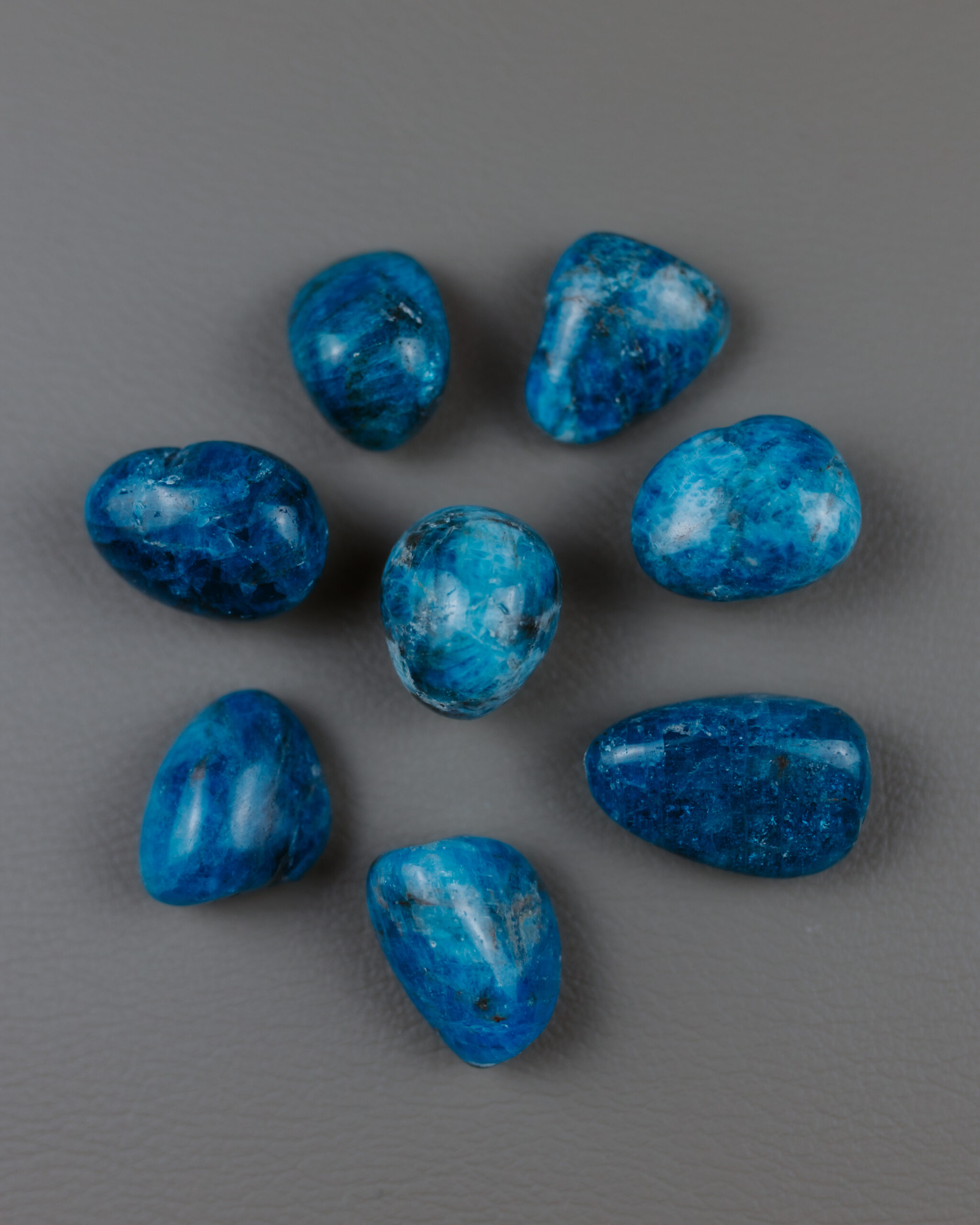 Apatit je kámen obvykle modré až zelenomodré barvy, který zaujme svým klidným a čistým vzhledem. V tradičním pojetí je považován za kámen, který podporuje komunikaci, soustředění a sebereflexi – napomáhá jasnému myšlení, otevřenému vyjadřování i pochopení vlastních pocitů.