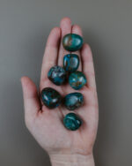 V tradičním přístupu je Chryzokol vnímán i jako ochranný minerál, který pomáhá odbourávat tíživé a složité energie z okolí a podporuje pocit bezpečí. Jeho jemné vibrace tak mohou přispět k celkovému uklidnění, hlubšímu vnitřnímu souznění a harmonickému vnímání sebe sama i druhých.