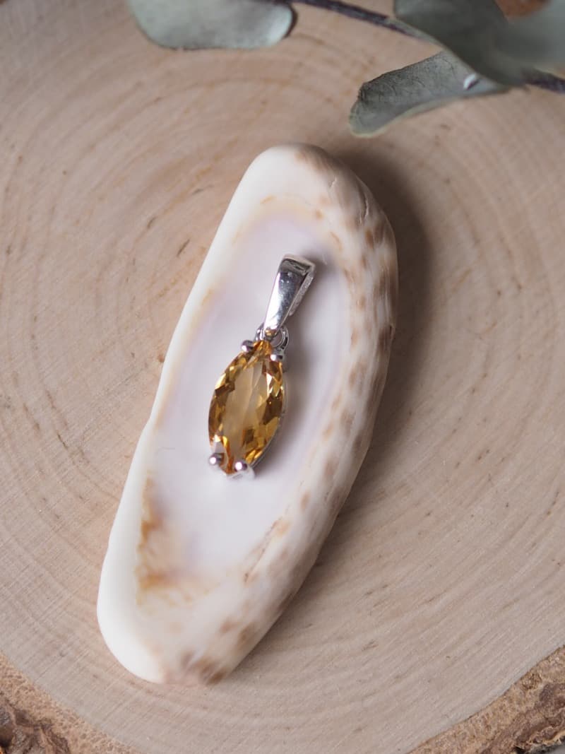 Stříbrný přívěsek z broušeného Citrínu pomůže do Vašeho života přitáhnout více štěstí, hojnosti a prosperity. Od nepaměti je Citrín ctěn jako kámen Slunce, má schopnost v nás probudit kreativitu, nadšení a odvahu plnit si své sny. Projasňuje mysl a učí nás pružně se rozhodovat a jednat.