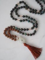 Korálky na male: Orientální Jaspis, Citrín, Jadeit, Rudrakša.