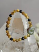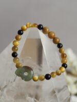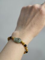 Korálky na náramku: Zlatý Obsidián, Tygří Oko, Onyx.