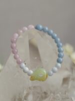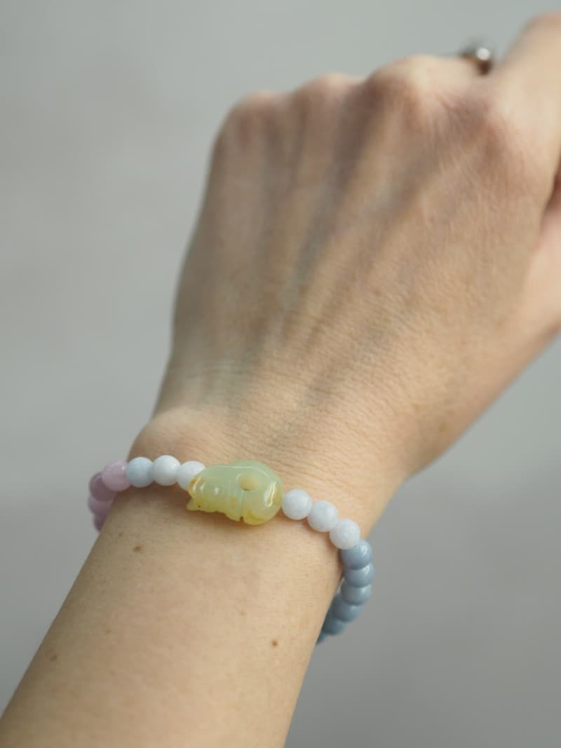 Korálky na náramku: Angelit, Kunzit, Celestín.
