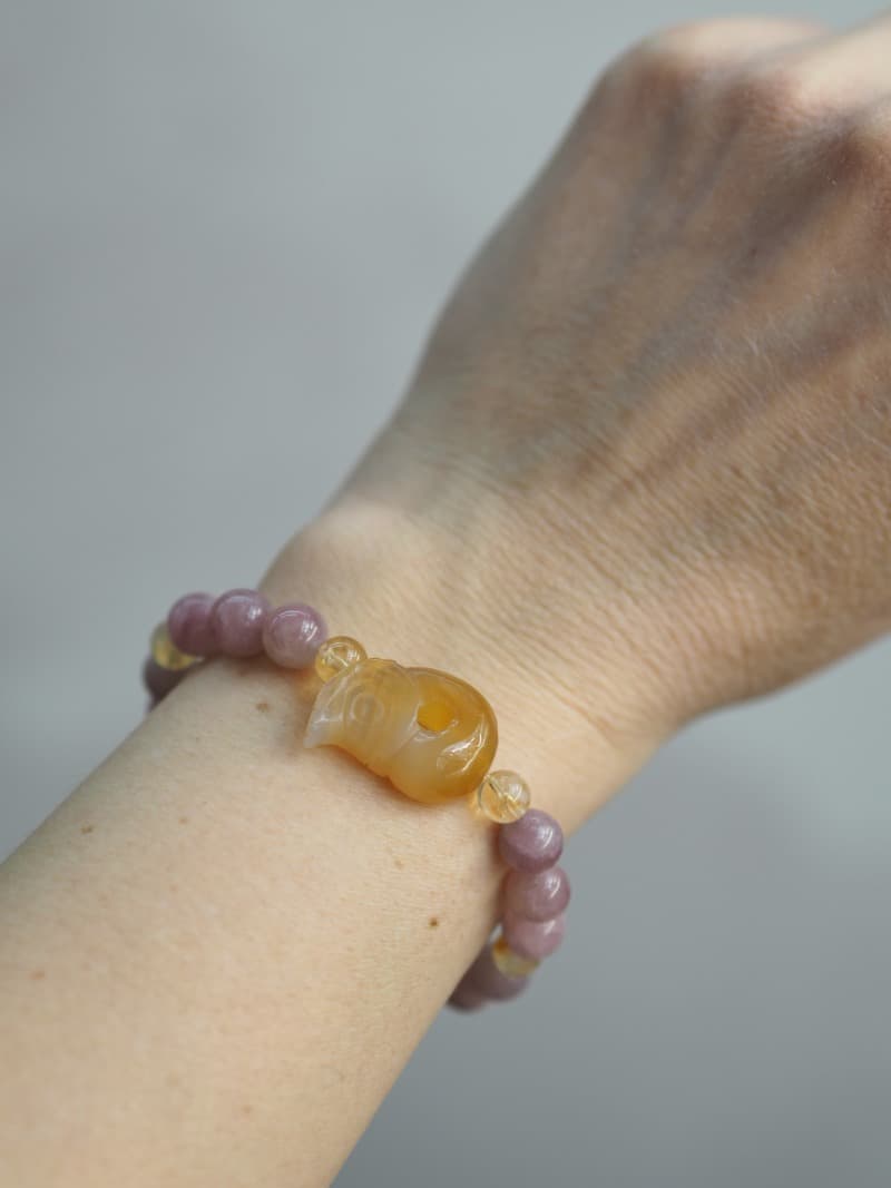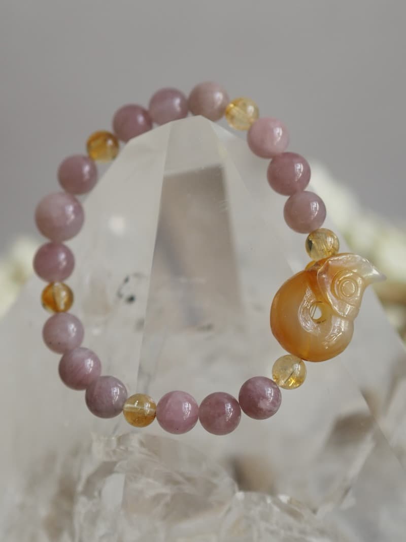 Korálky na náramku: Růženín, Citrín.