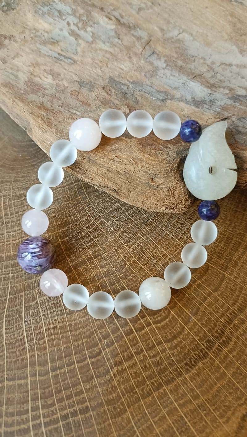 Korálky na náramku: Křišťál, Čaroit, Růženín