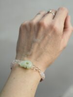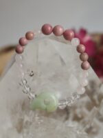 Korálky na náramku: Rodonit, Růženín, Křišťál.