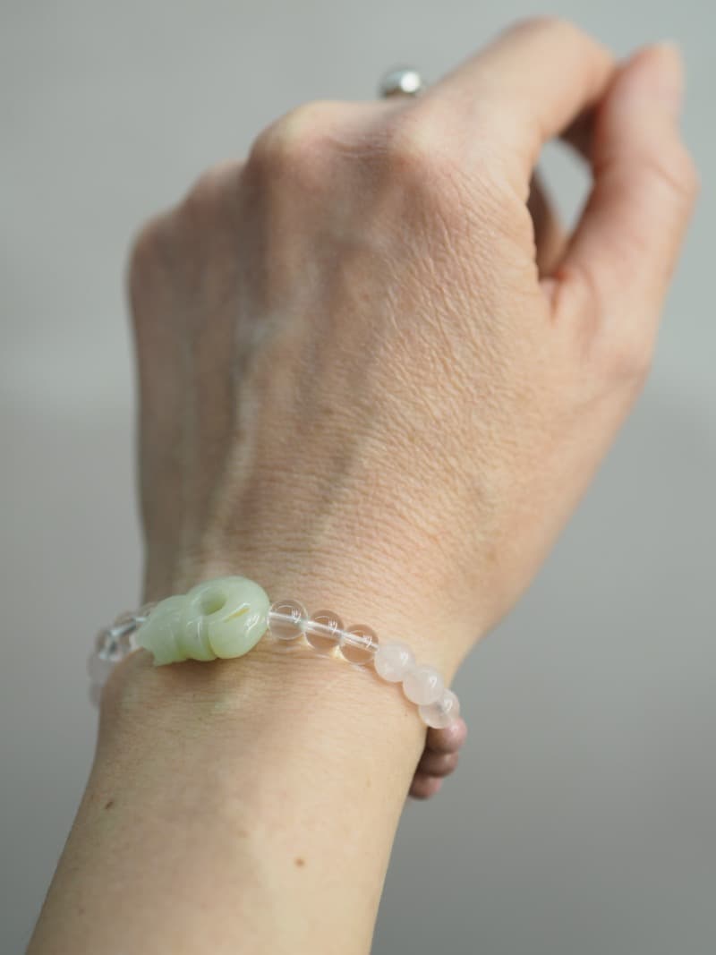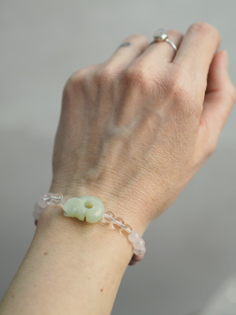 Jadeitový drak (A kvalita kamene) ve stylu neolitické Číny Vás lépe dovede do vyšších sfér, protože je to jeho domovina a může Vám být neskonale nápomocen na Vaší duchovní Cestě. Jadeit je kamenem klidu, zahání stres a negativní emoce, tiší strachy, vztek, obavy a zlobu, zahání pocit viny. Uklidňuje mysl, podporuje něhu, jemnost, je kamenem pravé, ryzí, lásky. Přispívá ke zdravým močovým cestám.