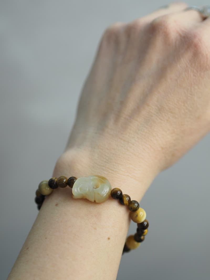 Jadeitový drak ve stylu neolitické Číny Vás lépe dovede do vyšších sfér, protože je to jeho domovina a může Vám být neskonale nápomocen na Vaší duchovní Cestě. Jadeit je kamenem klidu, zahání stres a negativní emoce, tiší strachy, vztek, obavy a zlobu, zahání pocit viny. Uklidňuje mysl, podporuje něhu, jemnost, je kamenem pravé, ryzí, lásky. Přispívá ke zdravým močovým cestám.