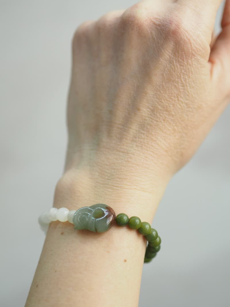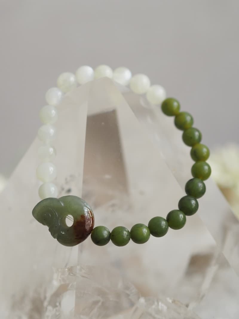 Korálky na náramku: Kanadský Nefrit, Měsíční kámen.