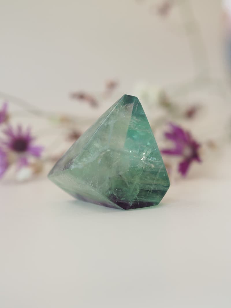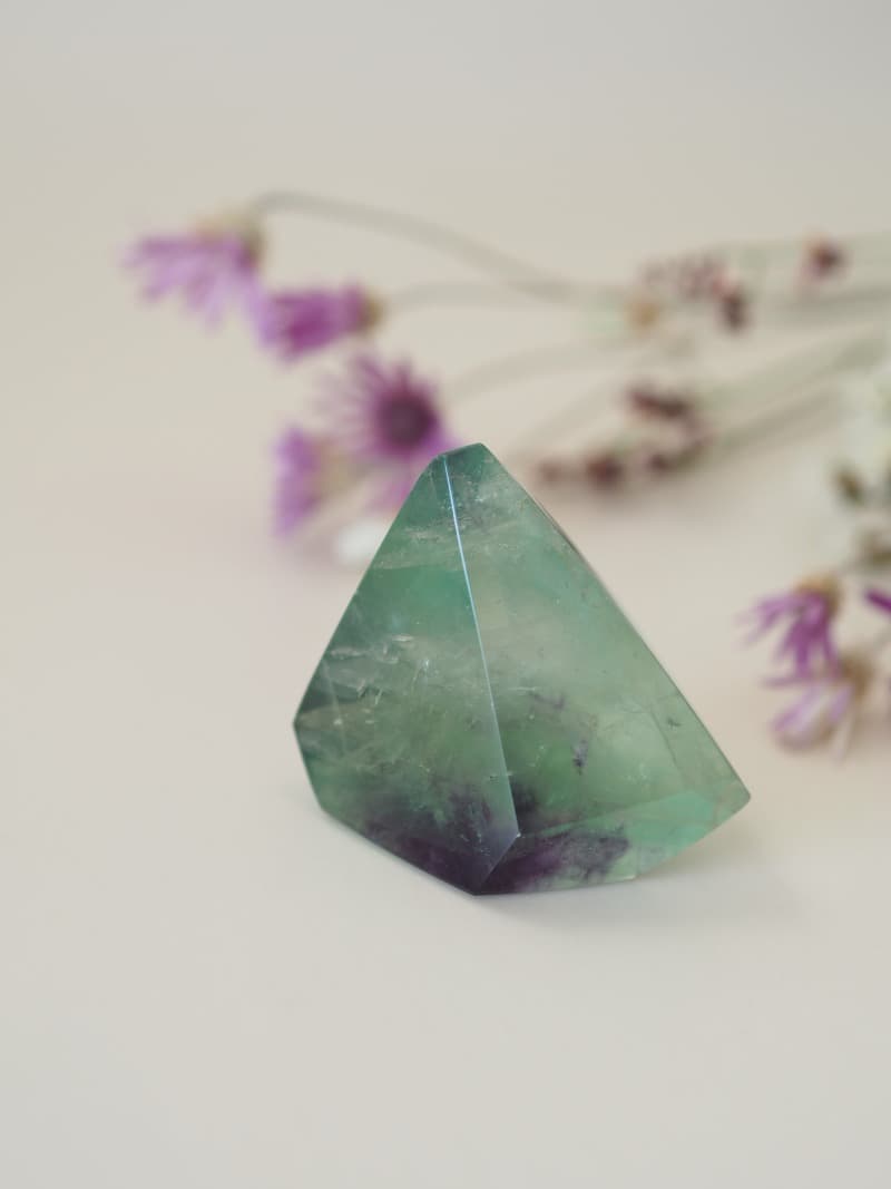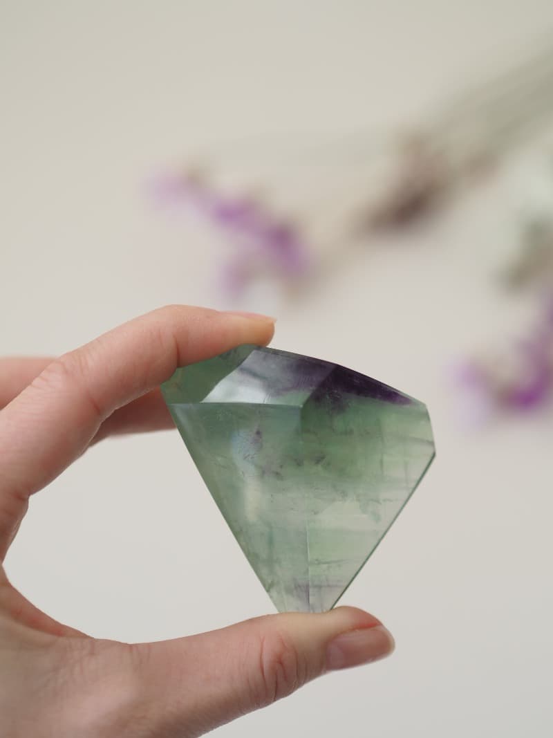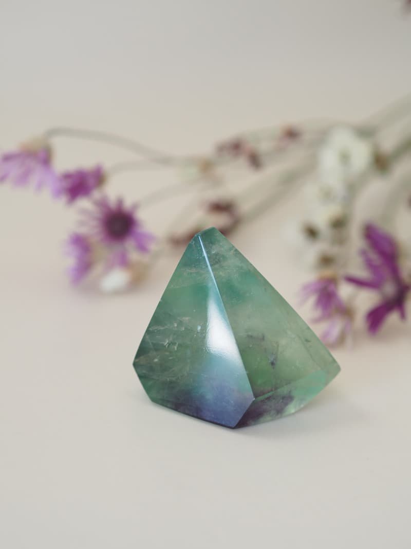 Fluorit je nádherný barevný krystal, který je nositelem velmi klidné energie. Odstraňuje bloky na fyzickém těle, odstraňuje těžké energie a zmírňuje stres. Blahodárně působí při práci s myslí. Přináší pozitivní myšlenky, zvyšuje schopnost soustředit se a pomáhá při rozhodování. Je vhodný pro studenty, do kanceláře či pracovny, ale i při meditaci a duchovní praxi.