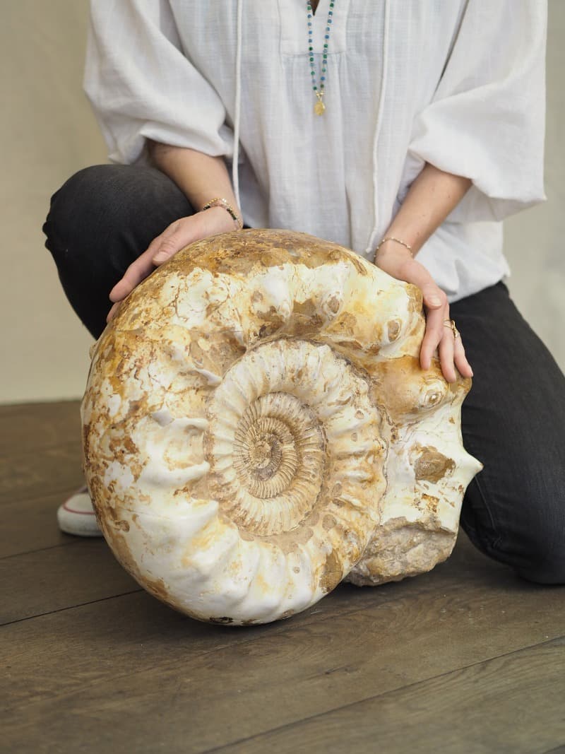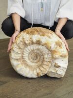 Zkamenělý extra velký Amonit bude nejen překrásným originálním doplňkem ve Vašich prostorech, ale také je prodchne obrovským klidem, jež vyzařuje. Přináší moudrost života na Zemi, vědomí a pochopení evoluce. Tvar spirály napovídá, že se jedná o předmět Duchovní Cesty, léčení minulosti a čerpání moudrosti a síly z minulých životů. Jedná se o vysoce harmonizační prvek.