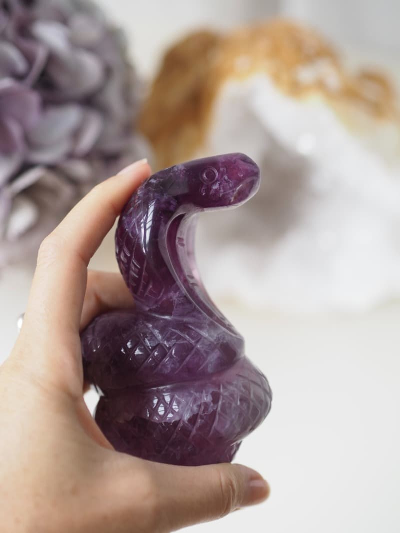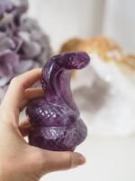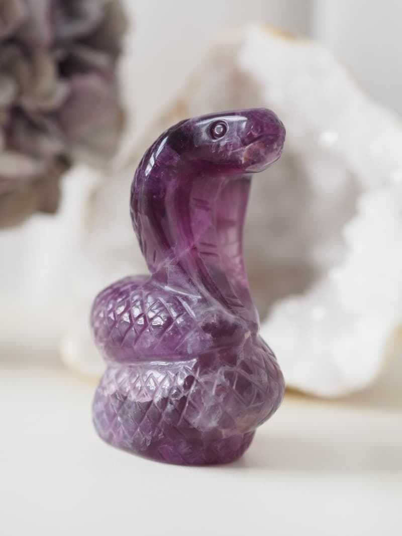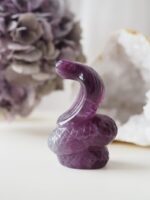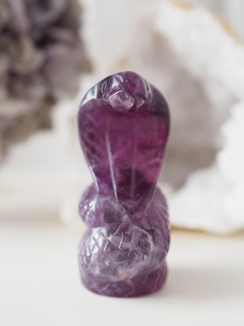 Fialový Fluorit zvyšuje vysoko-vibrační energie a propojuje s duchovním světem. Pomáhá přijímat a ukotvovat tyto energie do fyzického těla, aby se mohly projevit ve hmotném světě. Uvolňuje napětí v mysli a přináší hluboký vnitřní klid.