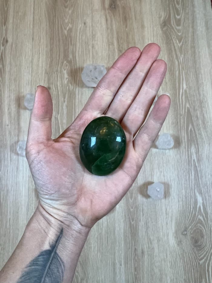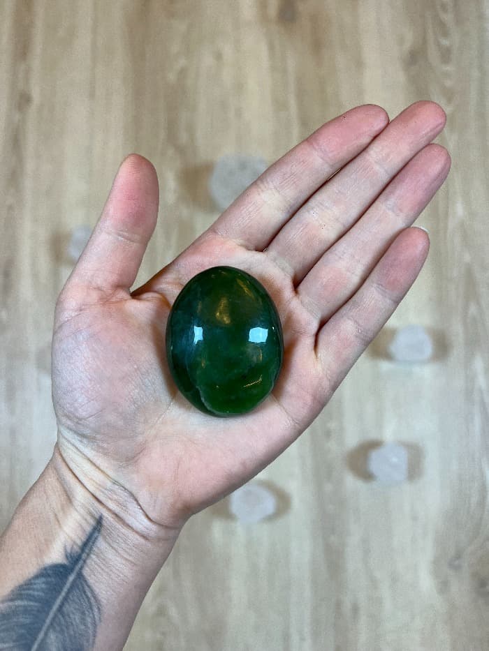 Jako kámen snů, položen na čele, přináší sny nahlížející do hloubky našeho nitra. Zelený Nefrit blahodárně působí na nervový systém, harmonizuje nefungující vztahy, pomáhá realizovat touhy a vášně, má nejblíže k centru srdce.