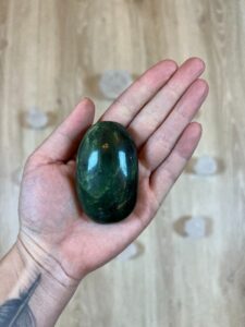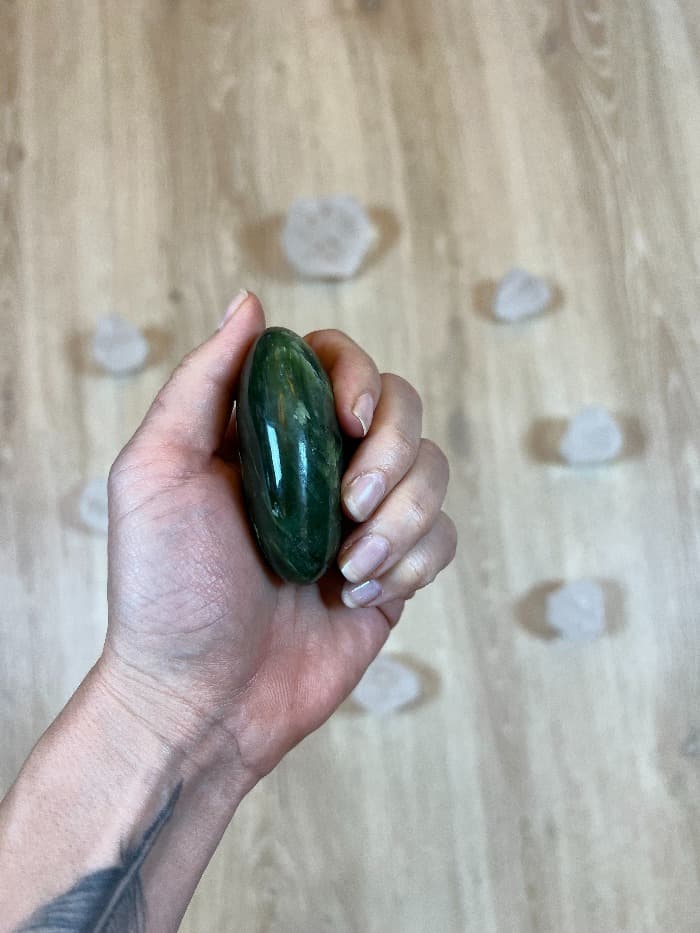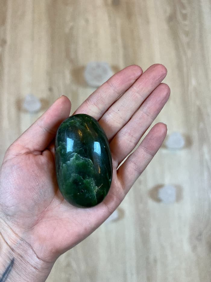 Jako kámen snů, položen na čele, přináší sny nahlížející do hloubky našeho nitra. Zelený Nefrit blahodárně působí na nervový systém, harmonizuje nefungující vztahy, pomáhá realizovat touhy a vášně, má nejblíže k centru srdce.
