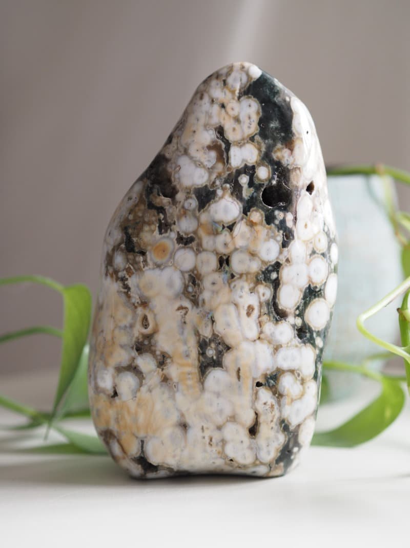Jaspis oceánový je kamenem radosti, klidu a ochrany. Pomáhá s emocionálním uzdravením, snižuje stres, podporuje sebevědomí a přináší vnitřní harmonii.