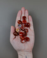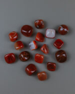 Achát Karneol spojuje teplé oranžovo-červené tóny s pevnou a stabilní strukturou, která působí přirozeně a příjemně. Karneol jako kámen podpory motivace a sebedůvěry je často využíván pro aktivaci vnitřní vitality a odhodlání. Podporuje schopnost činit reálné kroky směrem k cíli, zvláště pokud se člověk cítí „zaseknutý“ nebo bez energie.