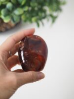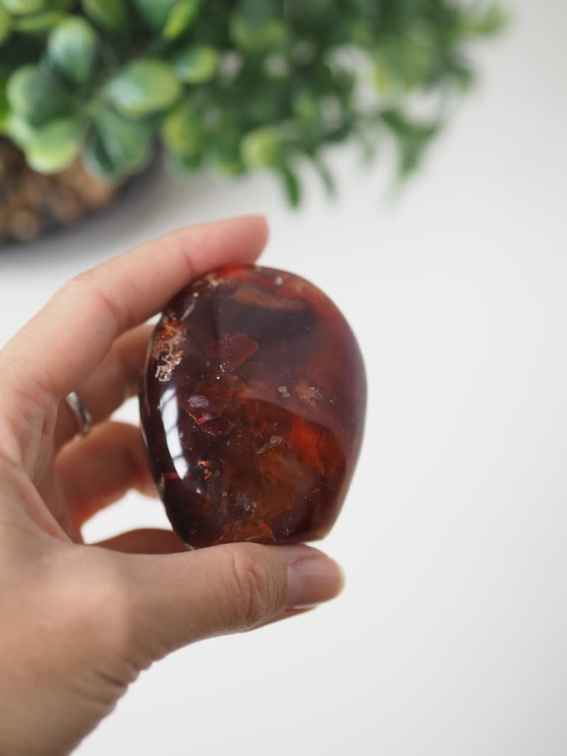 Karneol zvyšuje motivaci a dodává sebedůvěru. Pomáhá podnikat reálné kroky k vytyčenému cíli jedincům, kteří se nemohou pohnout z místa, jsou uvězněni v nečinnosti, lenosti a neví si rady kam směřují. Podporuje v nás kreativitu, uplatnění v životě, přitahuje nové zkušenosti a aktivní žití.