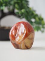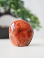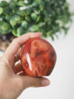 Karneol zvyšuje motivaci a dodává sebedůvěru. Pomáhá podnikat reálné kroky k vytyčenému cíli jedincům, kteří se nemohou pohnout z místa, jsou uvězněni v nečinnosti, lenosti a neví si rady kam směřují. Podporuje v nás kreativitu, uplatnění v životě, přitahuje nové zkušenosti a aktivní žití.