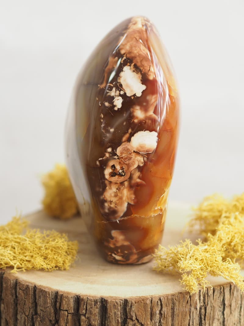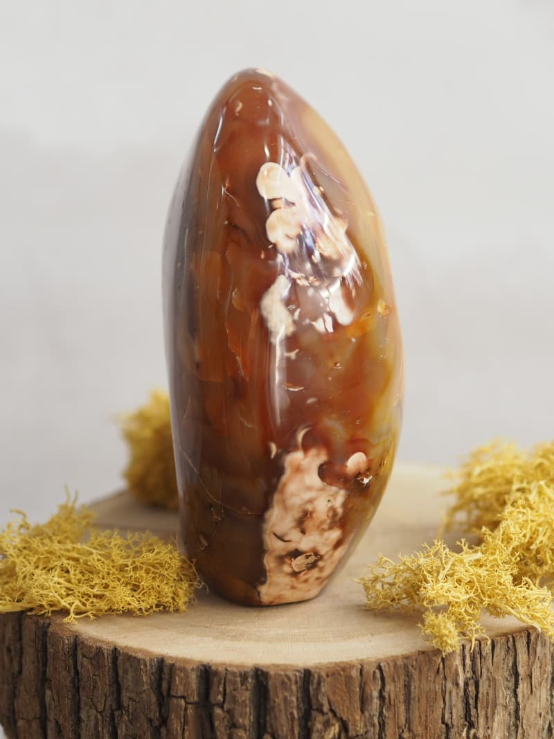 Karneol zvyšuje motivaci a dodává sebedůvěru. Pomáhá podnikat reálné kroky k vytyčenému cíli jedincům, kteří se nemohou pohnout z místa, jsou uvězněni v nečinnosti, lenosti a neví si rady kam směřují. Podporuje v nás kreativitu, uplatnění v životě, přitahuje nové zkušenosti a aktivní žití.