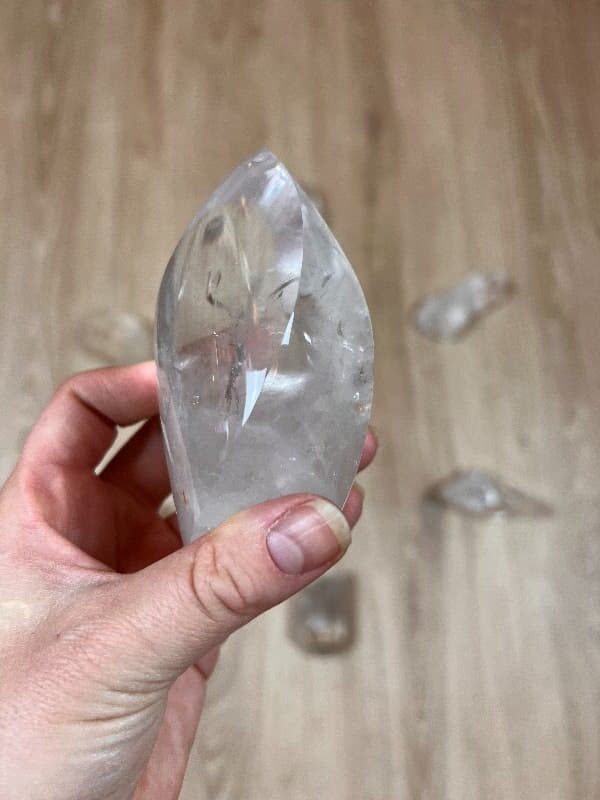 Křišťál vybroušený do tvaru špičky v sobě nese kvalitu ostrosti a jasnosti. Umístěním v mandale udává směr toků energie.