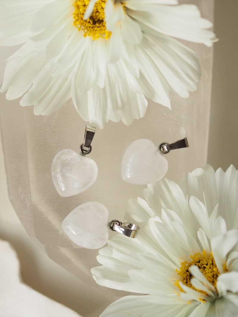 Přívěsek s Křišťálem ve tvaru srdce. Křišťál symbolizuje světlo na zemi, jeho očistnou a léčivou energii. Je považován za krále drahokamů. Je to nejúčinnější léčivý krystal a nejsilnější zesilovač energie na této planetě. Pohlcuje, uvolňuje a odstraňuje těžkou energii. Přináší hluboké pročištění duše. Nabíjí nás pozitivní a životodárnou energií.