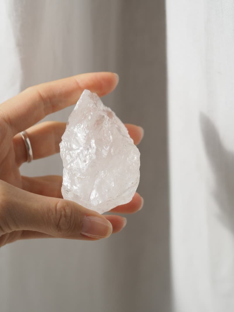 Křišťál ve své surové formě s mléčným zbarvením a nepravidelnými tvary evokuje nebeské sféry. Je čistý a světlem naplněný, ale zároveň se ve své divokosti hodí k nám, na Zemi. Spojuje v sobě kvalitu nebeskou i zemskou.