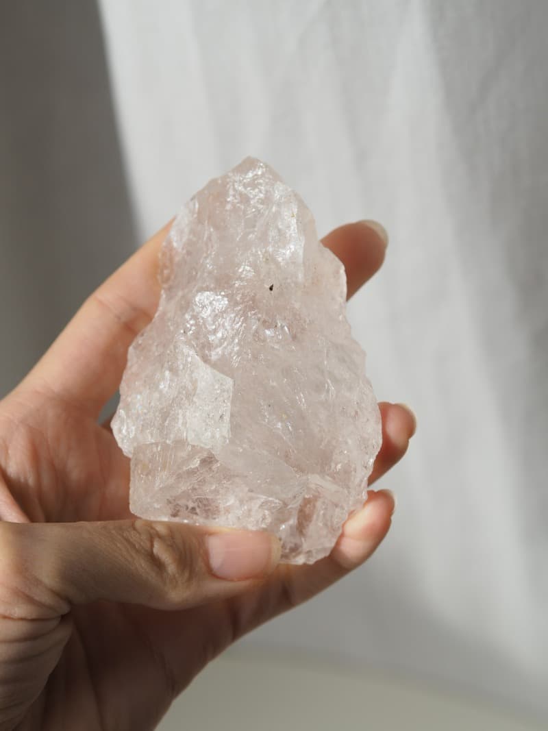 Křišťál ve své surové formě s mléčným zbarvením a nepravidelnými tvary evokuje nebeské sféry. Je čistý a světlem naplněný, ale zároveň se ve své divokosti hodí k nám, na Zemi. Spojuje v sobě kvalitu nebeskou i zemskou.