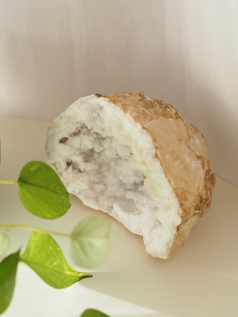 Geoda je dutý útvar vyplněný krystaly. Zformovala se ve vápencovém nebo břidlicovém podloží, kde se organická hmota rozložila a vytvořila v hornině místo, které pak působením zemských sil a geochemických procesů bylo vyplněno krystaly Křišťálu. Máme tedy možnost koukat přírodě přímo pod pokličku.