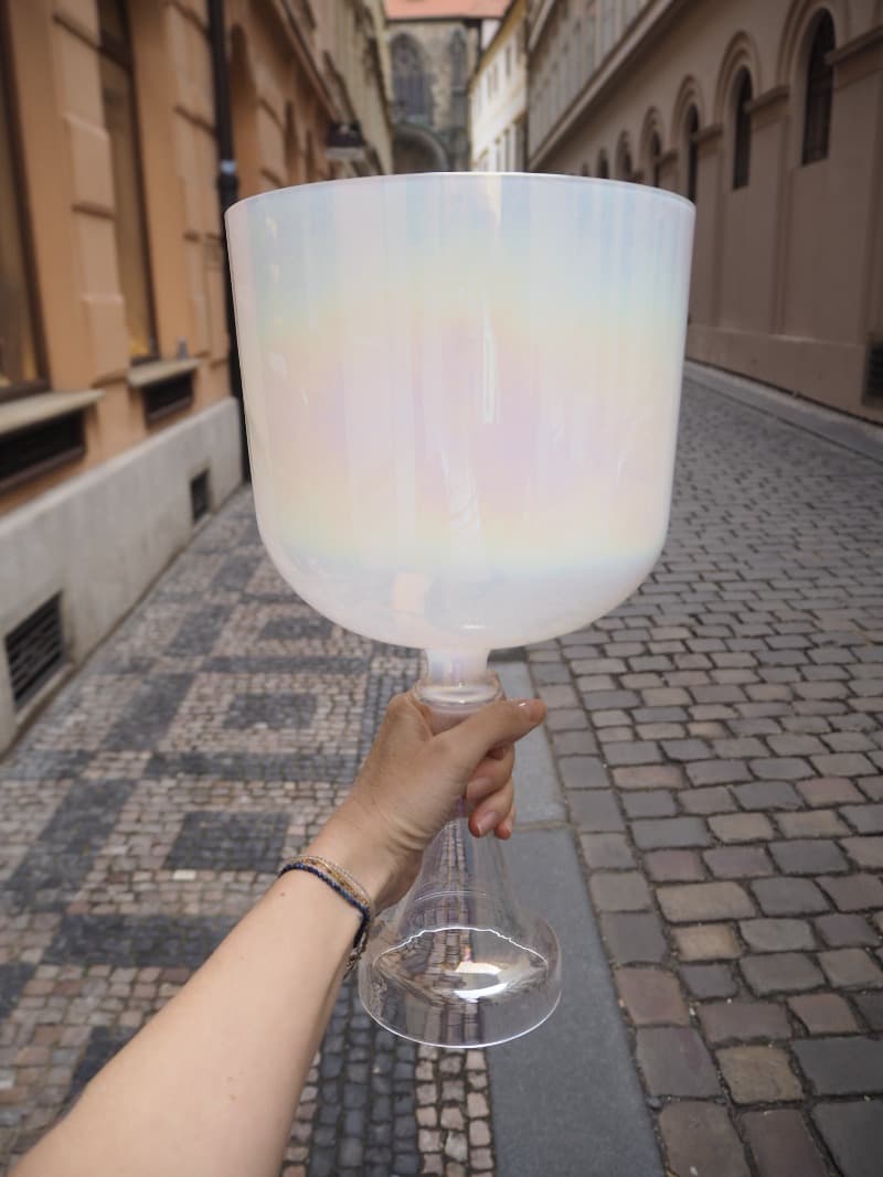 Křišťálové kalichy jsou vyrobeny z 99,9 % krystalického křemíku (SiO2), který se vyskytuje přirozeně v přírodě ve formě krystalického křišťálu. Naše těla jsou také krystalické struktury a obsahují křemík. Vibrační energie křišťálových mís a kalichů rezonuje společně s naším tělem a proniká hluboko do měkkých tkání, kde nás léčí na buněčné úrovni. Křišťálové mísy vytváří silné energetické pole, které nás hluboko prostupuje na úrovni všech našich těl. V porovnání se složitým kovovým složením a podtexty tibetské mísy je tón křišťálové zpívající mísy či kalichu velmi jednoduchý. Můžete snadno změřit jejich přesný tón.
