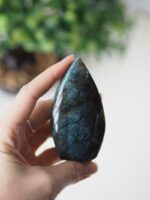 Labradorit si zamilujete nejen pro jeho barevné odlesky, ale i díky blahodárným účinkům. Provází v době životních změn, přináší sílu a vytrvalost. Tento kámen proměny připravuje tělo a duši na další růst. Podporuje kreativitu a objevování barevnosti života. Posiluje naší odvahu a sebedůvěru, vede nás k uskutečnění našich cílů a nápadů.