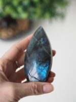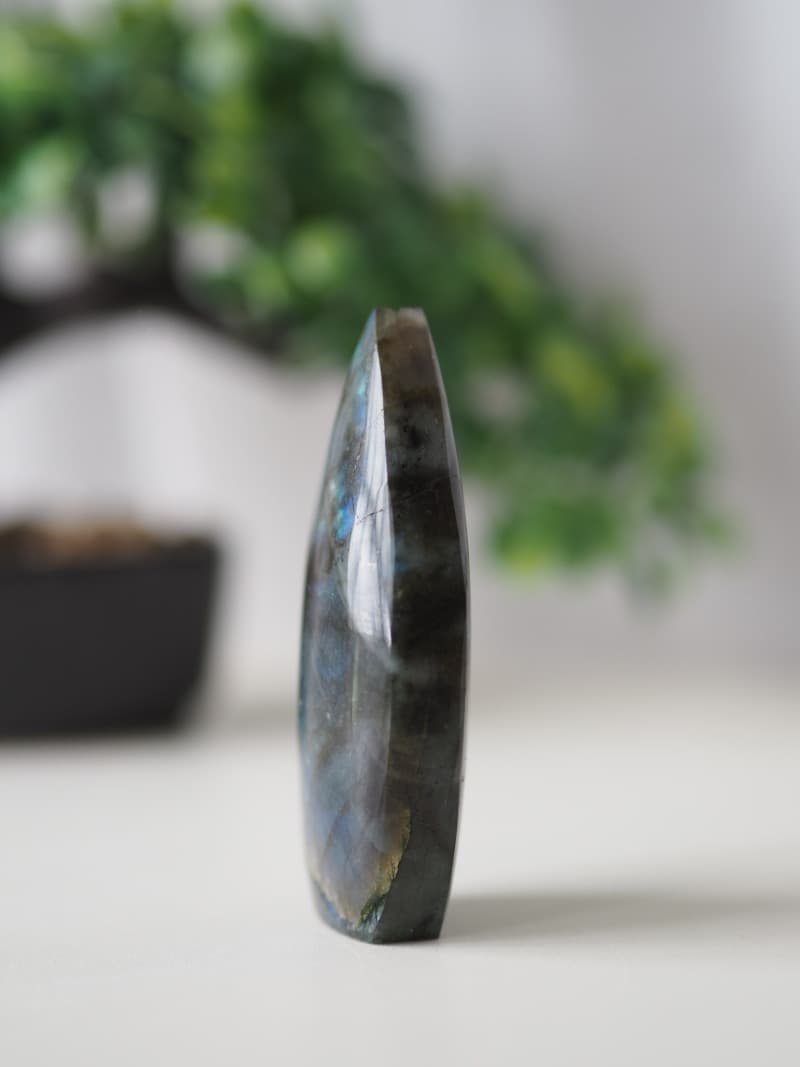 Labradorit si zamilujete nejen pro jeho barevné odlesky, ale i díky blahodárným účinkům. Provází v době životních změn, přináší sílu a vytrvalost. Tento kámen proměny připravuje tělo a duši na další růst. Podporuje kreativitu a objevování barevnosti života. Posiluje naší odvahu a sebedůvěru, vede nás k uskutečnění našich cílů a nápadů.