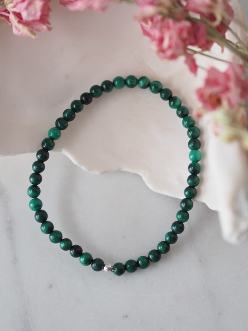 Malachit je kamenem změny a kreativity. Vzájemné prolínání a prostupování světlých a tmavě zelených odstínů uvnitř kamene tvoří bohaté obrazce a tvary, že svou krásou předčí veškerou fantazii. Tento zemitý kámen nám připomíná, že se i na život skládá že světlých a tmavých tónu, což nemůže ani jinak být v našem duálním světě.