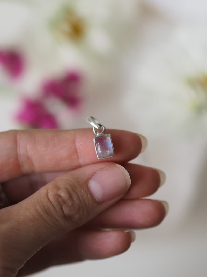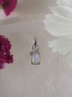 Stříbrný přívěsek s Měsíčním kamenem. Měsíční kámen je především kamenem žen, jejich ochráncem a léčitelem. Je ctěn jako symbol lásky, citu a vnitřní harmonie. Povzbuzuje jemnost a něžnost. Vnáší do života klid, porozumění, přizpůsobivost, jemnou pohyblivost, snahu po rozumných řešení. Zbystřuje intuici a usnadňuje komunikaci.