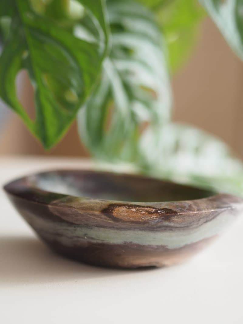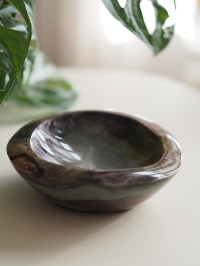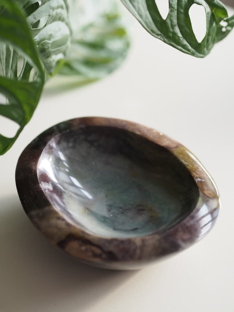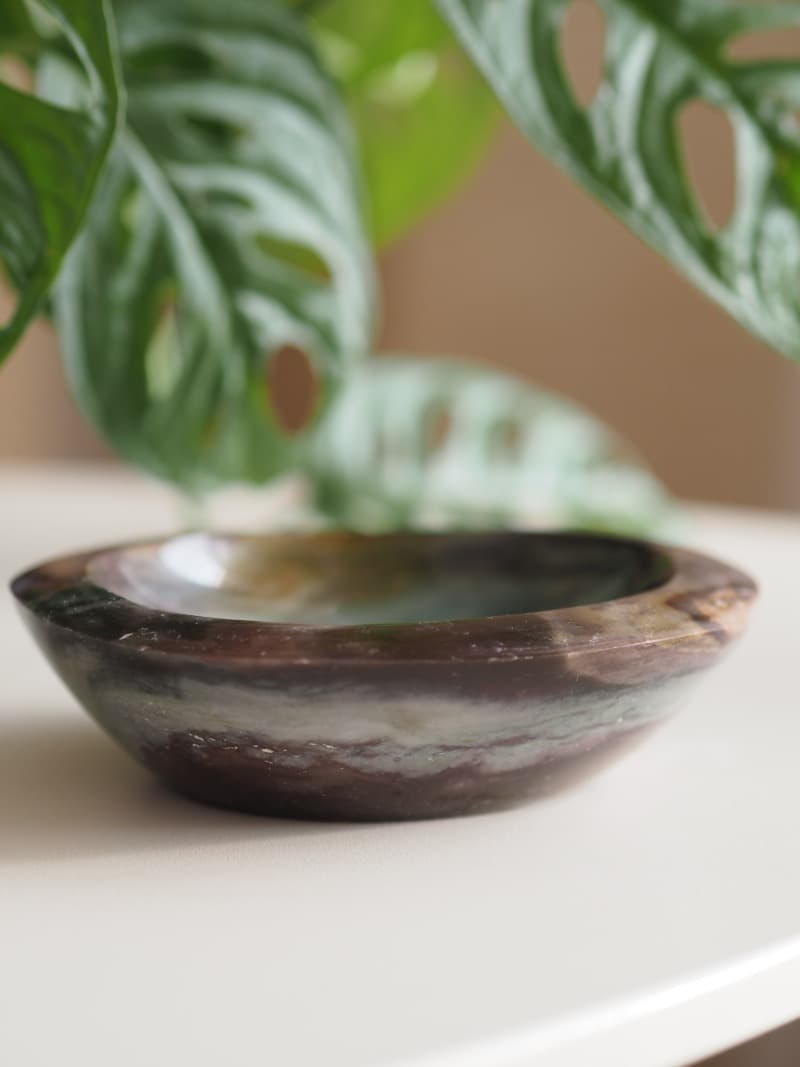 Překrásná miska z oceánského Jaspisu rozzáří Váš interiér. Nabije jídlo, šperky nebo kosmetiku pozitivní energií. Spojení praktické dekorace a energetického zářiče, který harmonizuje Váš interiér a předměty umístěné na míse.